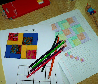 Agora passo a andar com um caderno quadriculado para criar e desenhar os padrões do meu trabalho.